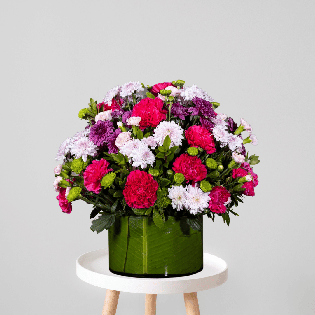 Carnation, Daisies and greens.